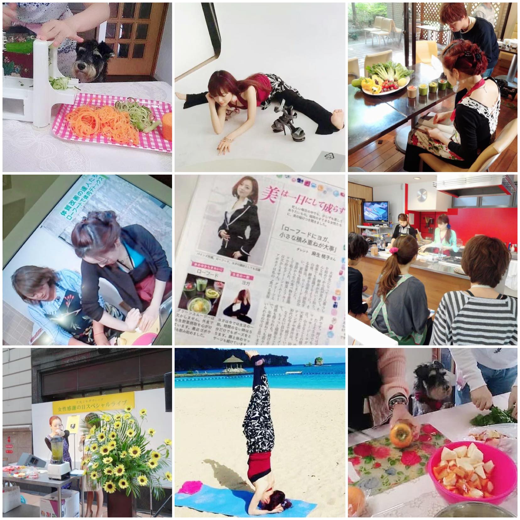 | 2011年 | 6月、JLBAローフードマイスター1級認定講師資格取得後、テレビ・ラジオ・雑誌などでローフード講師として紹介されたことをきっかけに、数多くの方にローフード講座の依頼を受け、提供が始まる。ヨガとローフードが融合した教室も展開。この頃から現在までローフード講師を多数輩出。 |